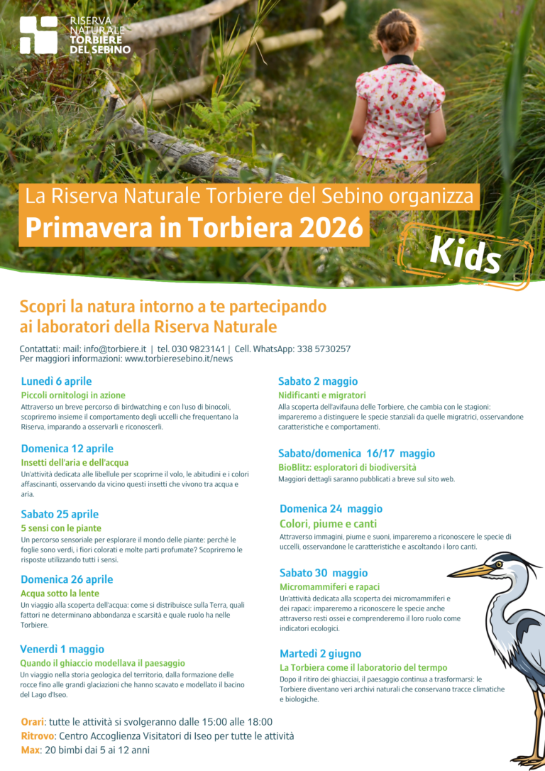 La Riserva Naturale Torbiere del Sebino dà il via a “Primavera in Torbiera 2026 – Kids”, un ricco calendario di laboratori ed esperienze dedicate ai più piccoli per scoprire la natura in modo coinvolgente e divertente.