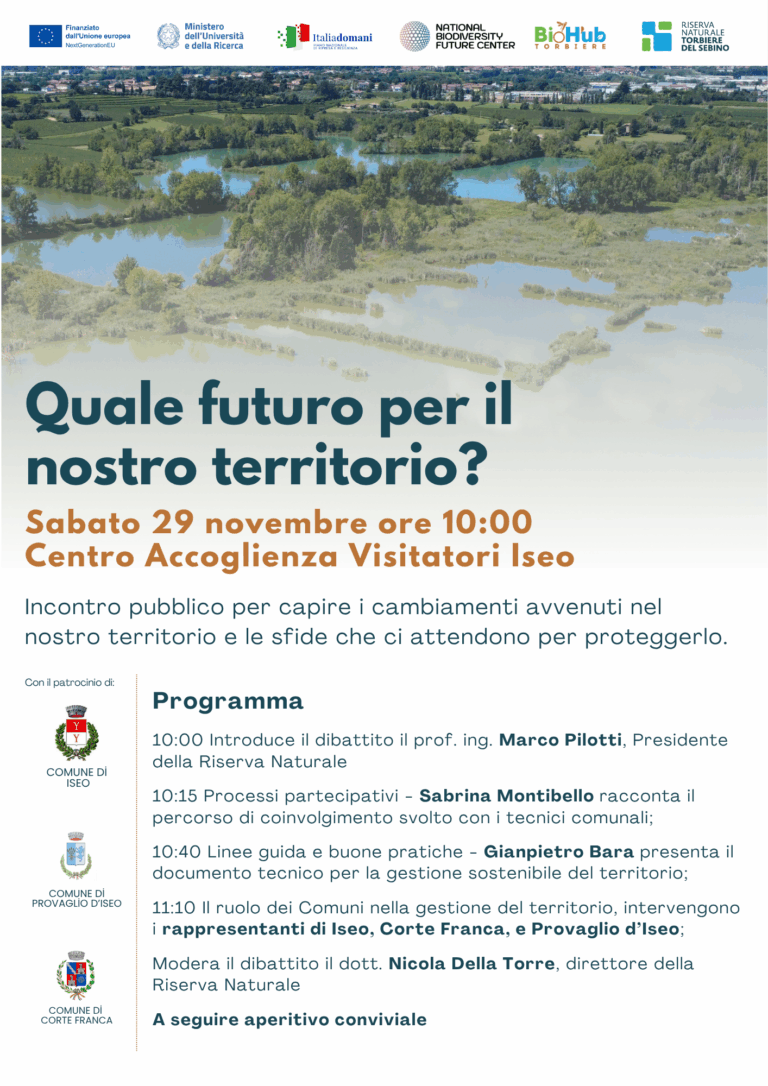 Per questo sabato 29 novembre alle ore 10:00, presso il Centro Accoglienza Visitatori di Iseo, si terrà un incontro pubblico aperto a tutti, dedicato proprio al futuro del territorio e al ruolo che istituzioni e cittadini possono svolgere per proteggerlo e valorizzarlo.